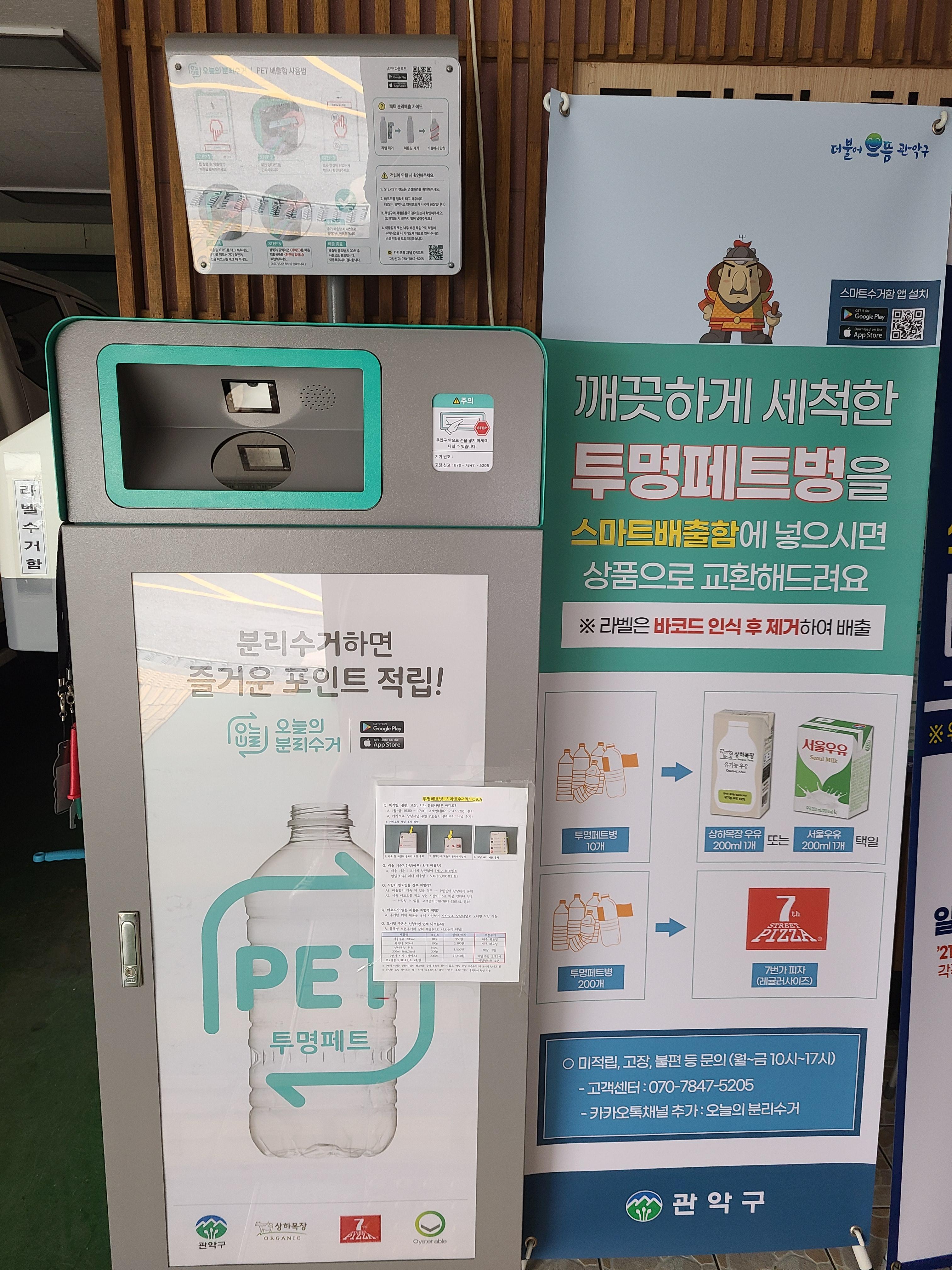 *글을 올리고 한달도 되지 않아 긍정적인 변화가 있어 기록해 둔다. 리워드는 택배배송이 아니라 쿠폰으로 받을 수 있는 품목이 추가되었다. 또 기계 앞에서 라벨을 떼는 수고를 덜게 무라벨 페트의 경우 찍을 수 있는 바코드가 기계 바로 옆에 비치되었다. 어느날 페트병을 넣으러 가서 바코드를 인식시키고 있는데 관계자분이 뒤에 앉아계시다 직접 설명해주셨다(아침 8시 반도 안된 시각이었는데, 깜짝 놀랐지 뭐야!). 플라스틱을 잘 쓰지 않으니 페트병을 구하기가 어려운데, 어쨌거나 생기는 페트병은 모조리 넣어주겠어!