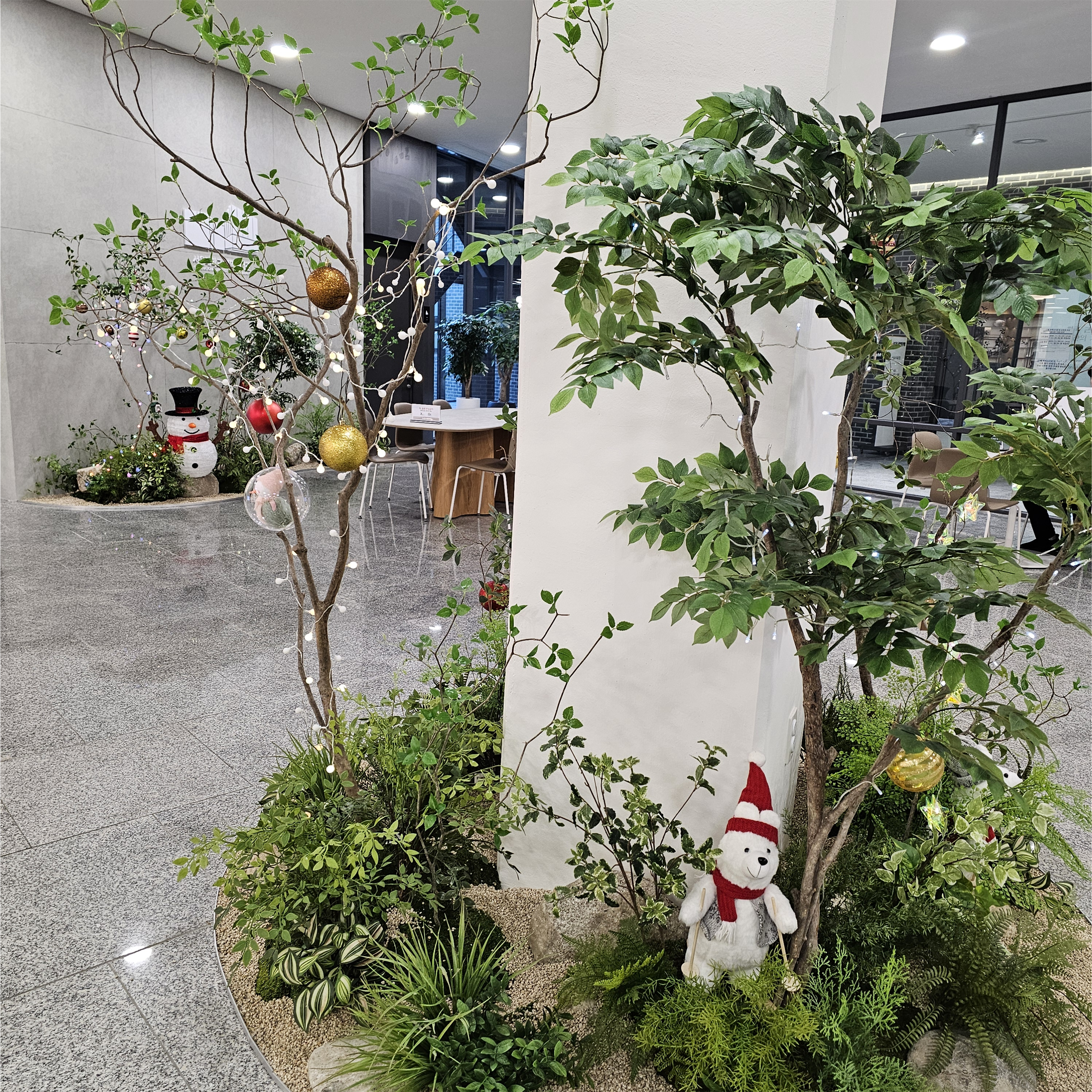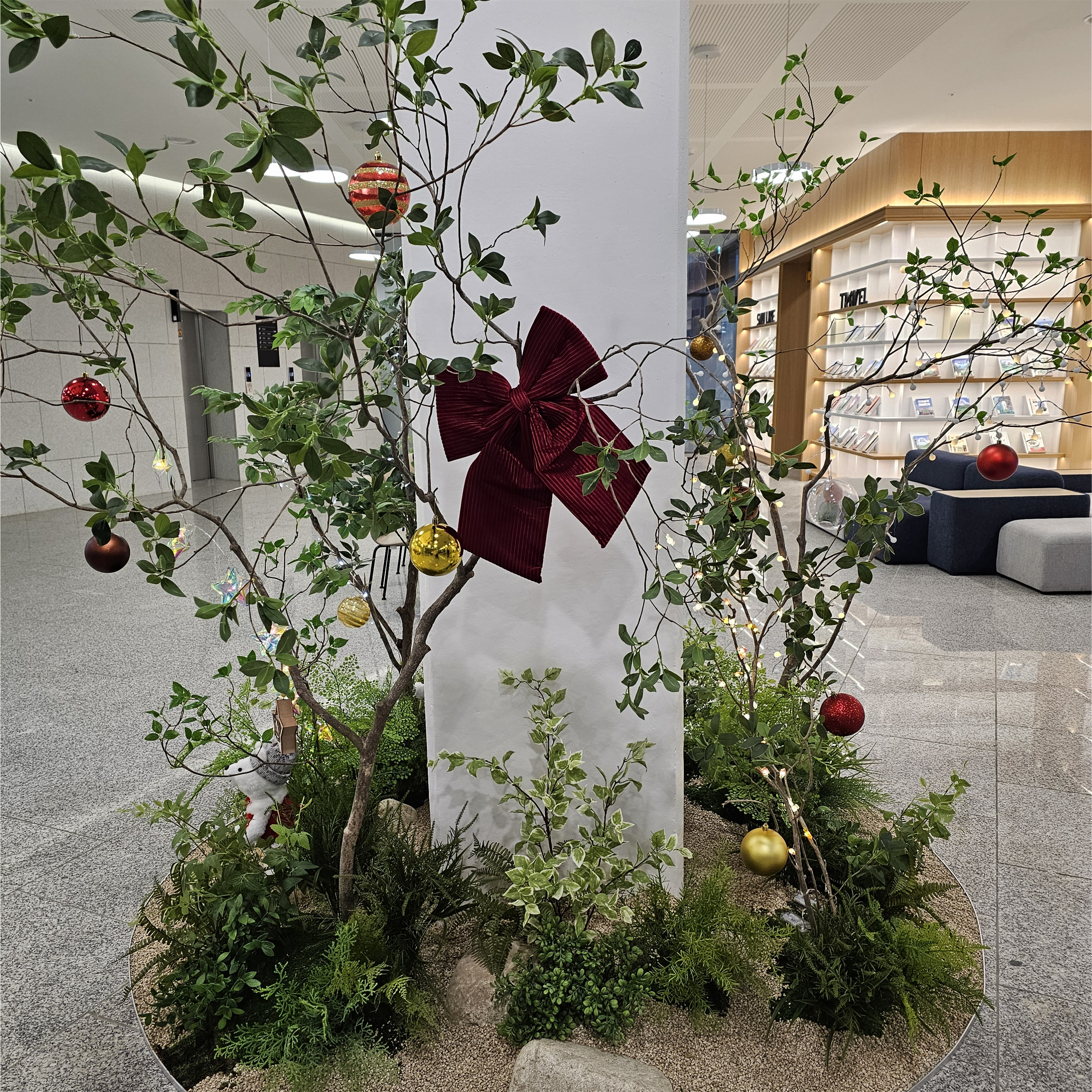 북극곰을 세우고 오너먼트를 주렁주렁 달 때까지는 상당히 흥겨웠다. 동료와 도넛을 이쪽에 걸까, 사탕을 저쪽에 걸까 논의했다. 이런 일을 하며 돈을 받다니 끝내준다며 웃었다. 이것저것 깔고 보니 조명이 많았으면 해서, 점심시간에 다이소에 가서 전구를 한 아름 사 왔다. 그것이 고통의 시작인 줄은 모르고.