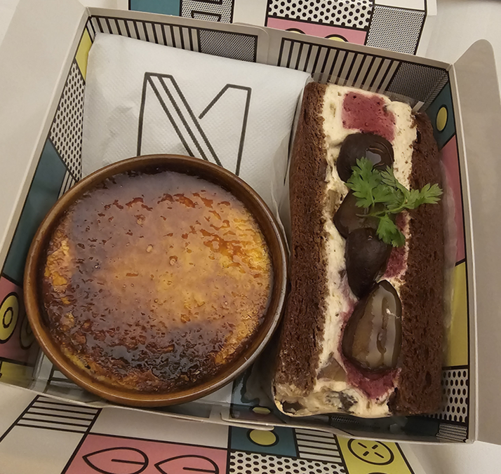 저녁을 먹고 나와 너무 힘들긴 한데 배가 꽉 차지 않았다는 너에게 미리 찾아두었던 산도 집을 제안했다. 설탕홀릭인 네가 안 넘어올 일이 없지. 8시 마감인데 7시 50분에 허겁지겁 도착한 우리는 몇 남지 않은 메뉴 중 두 개를 골랐다. 한국인이 많다던 리뷰답게 매장 안에는 한국인 취식객뿐이었고, 의심스러운 마음으로 구입을 했던 우리는... 그냥저냥한 숙소 침대에 앉아 어우 맛있다를 연발하며 흡입을 마쳤다. 아무 리뷰에서도 크림브륄레나 몽블랑초코를 추천하지 않았는데요, 이게 이 정도면 추천템은 얼마나 맛있을까 싶었답니다. 포장에 쓰인 스티커는 후에 집까지 모셔다 다이어리에 붙였다. 그리고 지쳐 나가떨어진 나는 씻지도 못하고 불도 못 끄고 잠들어 버렸다. 이것은 여행인가 극기훈련인가. 한국에 돌아와 나흘을 앓아눕게 한 나흘 간의 여행에서 그렇게 하루가 흘렀다.